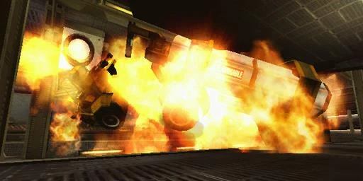 Also of note, there is also a fuel truck parked in the repair vessel. Attackers can use this to jump more easily to the next objective, but the defenders can blow it up with only a few well-placed shots. - Open Side Doors: Attackers must activate a switch on a raised platform at the front of the repair vessel to open side doors at the front and rear. Standing on this objective for no more than a couple seconds will activate the switch completely allowing the attackers access to the Nexus Missile Trailer. After this objective is completed, the ramp near the defenders' spawn point closes up and for the remainder of the match, they maneuver the upper level of the repair vessel to catwalks that overlook the Nexus missile trailer.