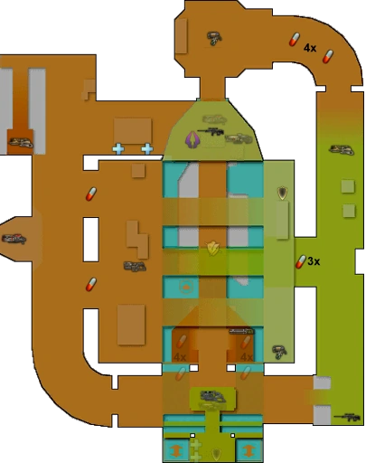 - Tall North Corridor (2 Health Packs): The small corridor.