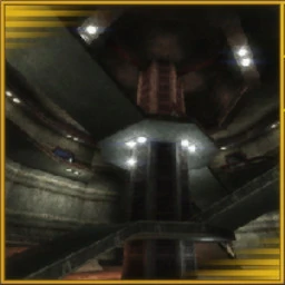 - Central Dome: The main fighting area of the map, a 16-sided dome with plenty of walkways and portals leading to many areas of interest. Two teleporters in the Middle Low hallway and Middle High hallway lead to the Northwest Chamber and the Flak Hallway. It also has an elevator in the middle that allows players to quickly switch between floors.