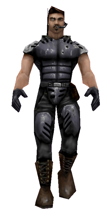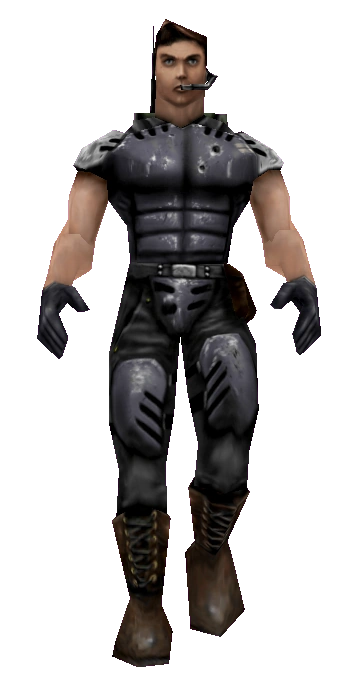 Bot data: Accuracy: Combat Style: Alertness: Tend. to camp: Strafing ability: Loves to jump? No Preferred weapon: None. "Farham fought with the Earth Defense Force during the '7 Day Siege', Earth's darkest hour during the war. He was solely responsible for the destruction of the Skaarj Skri'ith Class Dreadnaught 'Krujhlok' and is a highly decorated veteran." | |