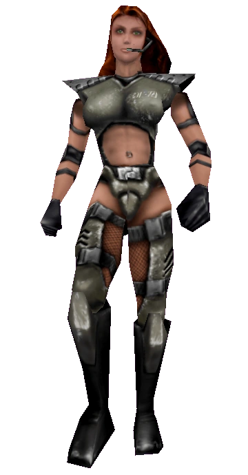 Bot data: Accuracy: Combat Style: Alertness: Tend. to camp: Strafing ability: Loves to jump? No Preferred weapon: None. "Nikita was trained in the construction and maintenance of heavy weaponry and demolitions. She maintains the Dark Phalanx armory." | |