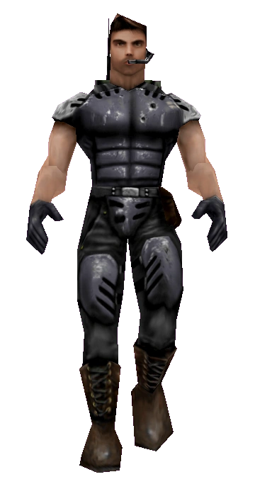 Bot data: Accuracy: Combat Style: Alertness: Tend. to camp: Strafing ability: Loves to jump? No Preferred weapon: None. "Whitman is a former Neo-Cop from Outpost Glosk who decided to trade the anarchy of street duty for the organized chaos of the Tournament. His street experience makes him a world class arena fighter and a worthwhile ally." | |