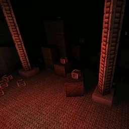 Weapon: 1x At the first big area, in a wooden box. Ammo: 2x Top of crates, in the first big area, in wooden boxes. 1x Near the weapon, in a wooden box. 1x Teleporter Control Room, in a wooden box. | |