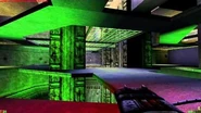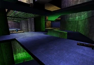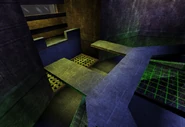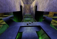 This map is set in what seems to be a large vertical wind tunnel. There are two levels, connected by elevators on opposite sides of the tunnel, and both consist of a number of (slightly narrow) walkways. Most of these walkways are located in the center of the map, but there is a path against the side of the tunnel on the lower level that could potentially save a player from falling down. Beneath these walkways, at the bottom of the map is a large fan, where the map got its name from. Falling down the walkways will result in death. Players spawn on the upper level, near the sides of the tunnel near either a Rifle pickup, or near the ASMD and Razorjack. There are no health/armor pickups, except for one Super Health in the middle of the tunnel, on the lower floor.