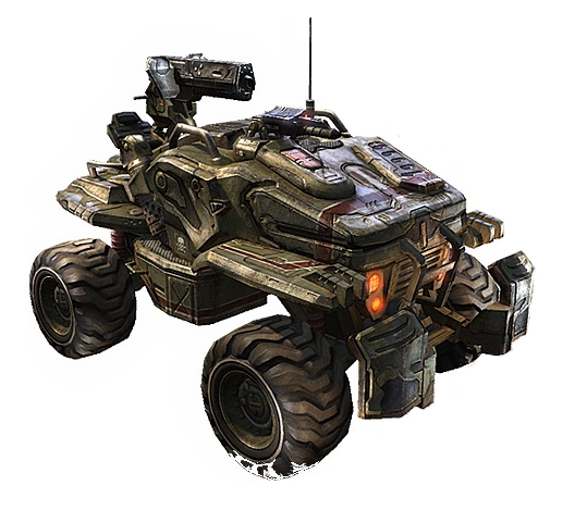 The upgraded chassis provides strong maneuverability in the field, and the up-armored neutron panels offer moderate protection to the vehicle's occupants.